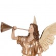 Anđeo u haljini zlatne-bež boje, izrađen od poliresine, dimenzija 17x21xh41cm, težine 4.08kg.