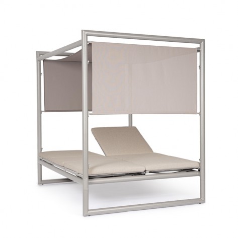 Aluminijski okvir, praškasto lakiran (poliester). Ležaljke sa podesivim naslonom u oba dva smjera sa 4 položaja leđa (materijal tekstilen). Tekstilenska klizna nadstrešnica za sunce u 3 položaja. Uklonjivi jastuci s olefinskom vodoodbojnom tkaninom (100% polipropilen). Vijci od nehrđajućeg čelika. Potrebna montaža.