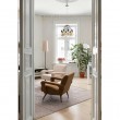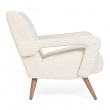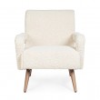 Fotelja Berna bijele boje, dimenzija 65x79xh74cm. Okvir od borovog drva i šperploče, presvlaka od poliestera s efektom vune. Noge od kaučkovog drva s plastičnim podesivim nožicama. Ispunjen poliuretanskom pjenom (gustoća 24 kg/m3).
