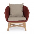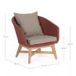 Sjedište izrađeno od aluminijskog okvira, praškasto premazano (poliester). Olefinsko tkanje (uže 100% polipropilen). Jastuk za sjedište i naslon s uklonjivom navlakom od sunproof vodootporne olefin tkanine (100% polipropilen). Noge od tikovine - svlk (certificirano drvo iz održivih šuma). Pocinčani čelični vijci. Noge potrebno sastaviti. Pažnja: prije sastavljanja, provjerite odgovara li numeracija sjedala i nogu.