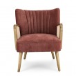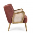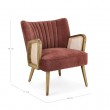 Fotelja Virna smeđe boje, dimenzija 64x71xh79cm. Okvir od borovog drva i šperploče, presvlaka od poliestera s baršunastim efektom. Noge od kaučkovog drva. Naslon za ruke s umetcima od ratana. Ispunjen poliuretanskom pjenom (gustoća 24 kg/m3).