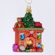 Stakleni ukras kamin za objesiti, smeđe boje, dimenzija 9.5x6xh14.5cm.