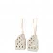 Kućica Clay s toplo bijelim LED lampicama, bijele boje, izrađena od keramike, dimenzija 7.5x6.5x12.5cm. Radi na baterije.