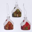 Stakleni ukras Nellas za objesiti ukrašena gliterom, crvene ili zelene boje, dimenzija 4.5x4.5xh8cm. Sortirano. Cijena je za 1 kućicu.