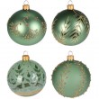 Staklena kuglica promjera 10cm, zelene boje, ukrašena zlatnim gliterom. Sortirano. Cijena je za 1 kuglicu.