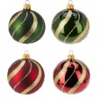 Staklena kuglica promjera 8cm, crvene ili zelene boje, mat ili sjajna, ukrašena zlatnim gliterom. Sortirano. Cijena je za 1 kuglicu.