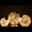 Staklena kuglica sa toplo bijelim LED lampicama, prozirno-zlatne boje, veličine L, promjera 25cm. Radi na baterije. Max 4.5W.