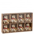 Set od 8 medvjedića za objesiti, zlatno-crvene boje. Kutija dimenzija 25x15x4cm.