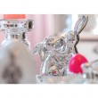 Porculanski ukras par zečeva koji se ljube, posrebreno i polirano, dimenzija 13x7x16cm.