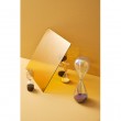 Stakleni pješčani sat Kronos boje jantara s pijeskom bijele boje, promjera 8cm, visine 21.5cm.