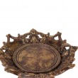 Pladanj na postolju zlatne boje, promjera 19.5cm, visine 11.5cm, izrađen od poliresine.