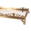 Pladanj zlatne boje s ogledalom, izrađen od mesinga. Dimenzije pladnja su 64x42xh10cm. Težina 5.3kg.