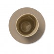 Ovaj elegantni podmetač za čašu nudi savršen spoj funkcionalnosti i stila. Okrugli, dvostrani dizajn s promjerom od 10 cm i debljinom od 0.16 cm, izrađen je od reciklirane kože Nupo teksture, koja podsjeća na antilop s mekom mat površinom. Njegov nordijski minimalistički izgled doprinosi jednostavnom i sofisticiranom dojmu, a različite boje na svakoj strani omogućuju prilagodbu stilu vašeg prostora. Jedna strana je u svijetlo smeđoj boji (Clay brown), dok je druga u tamno smeđoj boji (Caviar), što daje dodatnu svestranost. Savršen za zaštitu vaših površina, uz elegantan i ekološki prihvatljiv dizajn. Cijena je za 1 podmetač.
