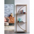 Polica za knjige s 3 staklene police, dimenzija 56x25xh151.5cm. Čelični okvir premazan epoksi prahom, zlatne boje.