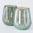 Stakleni svijećnjak promjera 17cm, visine 21cm, zelene boje kadulje. Cijena je za 1 komad.