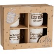 Set od 4 keramičkih šalica kapaciteta 200ml s natpisom, dimenzija fi7.7x8.1cm. Cijena je za 1 set od 4 šalice.