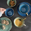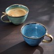 Porculanska šalica plave boje, kapaciteta 350ml, dimenzija 15.5x12.5xh7.5cm. Sortirano. Cijena je za 1 šalicu.