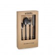 Set pribora za jelo od 16 dijelova. Uključuje 4 vilice, 4 noža, 4 žlice i 4 desertne žlice. Izrađen od nehrđajućeg čelika (nož: čelik 13/0. vilica, žlica, desertna žlica: čelik 18/8). Sa satenskim bakrenim završetkom. Boja nanesena PVD tehnikom. Certificirano za kontakt s hranom, može se prati ručno ili u perilici posuđa, preporučujemo sušenje mekom, neabrazivnom krpom kako biste izbjegli moguće mrlje. Varijacije u obliku i boji ovise o zanatskoj završnoj obradi proizvoda.
