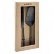set pribora za desert izrađen od nehrđajućeg čelika 18/8, sa satenski crnim završnim obrađivanjem. boja nanošena pvd tehnikom. certificirano za kontakt s hranom, može se prati ručno ili u perilici posuđa, preporučujemo sušenje mekom neabrazivnom krpom kako biste izbjegli moguće mrlje. varijacije u obliku i boji ovise o završnoj obradi proizvoda.