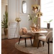 Metalni okrugli brončani stol sa bijelom mramornom pločom.