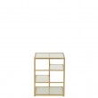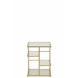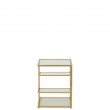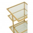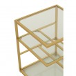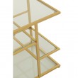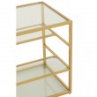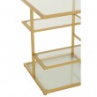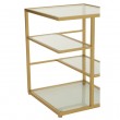 Metalni bočni stolić zlatne boje sa staklenim policama