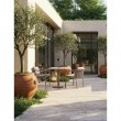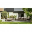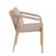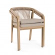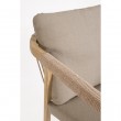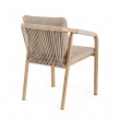 Efekt prahom premazanog aluminija (poliester) u efektu drveta. Leđa i nasloni za ruke s ispletenim poliesterskim užetom (promjer 5 mm). Uklonjivi jastuci sjedišta i naslona od olefin vodootporne tkanine (100% polipropilen). Stolice su složive jedna u drugu.