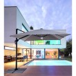 Aluminijska struktura, plastificirana (poliester). Stup 77x53mm. 8 letvica 24x14mm sa bijelim LED lampicama. Punjivo sa uključenim solarnim panelom. Platno svijetlosive boje od poliestera 250gr/m2 sa PA (poliamidnim) premazom. Baza od čelika. Rotirajući stup od 360° sa pedalinom. Vertikalni nagib s ručkom u 4 položaja. Opremljen sustavom naginjanja desno-lijevo. Mogućnost postavljanja LED lampe COD.0795364. Uključena zaštitna navlaka. Baza od cementa nije uključena.