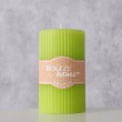 Svijeća promjera 6cm, visine 10cm, zelene boje, težine 239g. Vrijeme gorenja 20h.