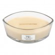 Svijeća ima fitilj od prirodnog drva koji potječe iz SAD-a a proizvodi se od odgovorno uzgojenog drva. Ekskluzivni drveni fitilj kod izgaranja daje svijetli ambijent, stvara smirujući zvuk pucketanja vatre i lepršavi plamen. Vrhunski parafinski i sojini voskovi stopljeni su tako da proizvode predivan plamen bez neurednog ostatka. Brzo oslobađanje mirisa trenutačnim stvaranjem iznimno aromatiziranog bazena voska. Sadrži pomno odabrane visokokoncentrirane sastojke testirane kako bi se osiguralo da prostoriju ispunjavaju dugotrajnim mirisom prirodnih aroma. Arome svijeća obogaćene su esencijalnim uljima, uz druge sastojke, uključujući i sintetička mirisna ulja. Upotrebljavaju se samo arome vrhunske kvalitete koje proizvode majstori parfumeri u slojevima bistrih zasebnih gornjih nota i kompleksnijih srednjih i donjih nota posebno dizajniranih za : Snažne prirodne mirise; Bogate sofisticirane sekundarne note s posebnim karakterom; Trajno snažno hladno i vruće širenje mirisa. Vrijeme gorenja 50 sati. Vanilla bean spada u slatku začinsku olfaktivnu grupu. Gornje note: čiste note vanilije i maslaca. Srednje note: šećerni kolačići i graham krekeri. Donje note: mahune vanilije i šećerna trska.