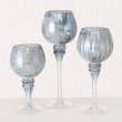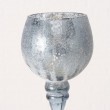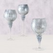 Stakleni svijećnjak plavo srebrne metalik boje, veličine S, promjera 10cm, visine 20cm. Cijena je za 1 komad