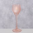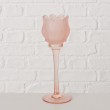 Stakleni svijećnjak Tully u obliku tulipana, roza boje, promjera 7.5cm, visine 22cm.