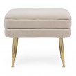 Tabure spremnik Pavlina bež boje, dimenzija 50x34.5xh42cm. Okvir od MDF-a i šperploče. Noge od kromiranog čelika zlatne boje. Navlaka od poliestera s baršunastim efektom. Punjenje gustoće 30kg/m3.