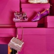 Stakleni ukras torbica za objesiti, roza boje, dimenzija 8x3x6cm.