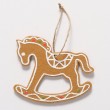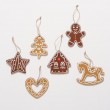 Ukras Ginger za objesiti, izrađen od poliestera, smeđe boje, dimenzija 14x12xh0.5cm. Sortirano: srce, konjić, gingerbread, kućica, jelka, zvijezda. Cijena je za 1 ukras.