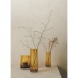Staklena vaza boje jantara, promjera 8cm, visine 22cm.