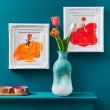 Staklena vaza Alea promjera 17cm, visine 35cm, tirkizno-bijele boje, sa zlatnim detaljem.