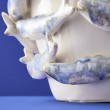 Keramička vaza bijele boje s 3D ribama plave boje, promjera 28cm, visine 42cm.