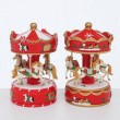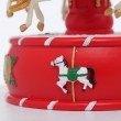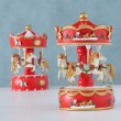 Muzička kutija zabavni vrtuljak Jolyna sa LED svijetlom, crveno/bijele boje, promjera 10cm, visine 17cm. Radi na baterije 3xLR44. Baterije nisu uključene. Sortirano. Cijena je za 1 muzičku kutiju.