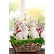 Zec stojeći sa cvjetnom krunom, izrađen od poliresine, dimenzija 15.5x19.3x39cm.