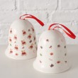 Keramičko zvono Bailey ukras za objesiti, bijelo/crvene boje, promjera 10.5cm, visine 10.5cm. Sortirano. Cijena je za 1 zvono.